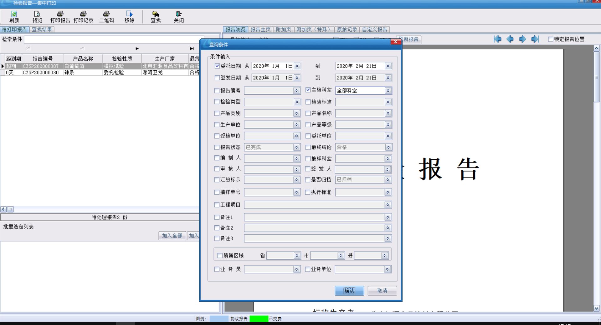 登錄有打印權(quán)限人員的賬號,打開報告打印,上面功能欄有一個查找按鈕,在查找中我們可以根據(jù)條件找到我們需要找到的那份報告,然后再次進(jìn)行打印。