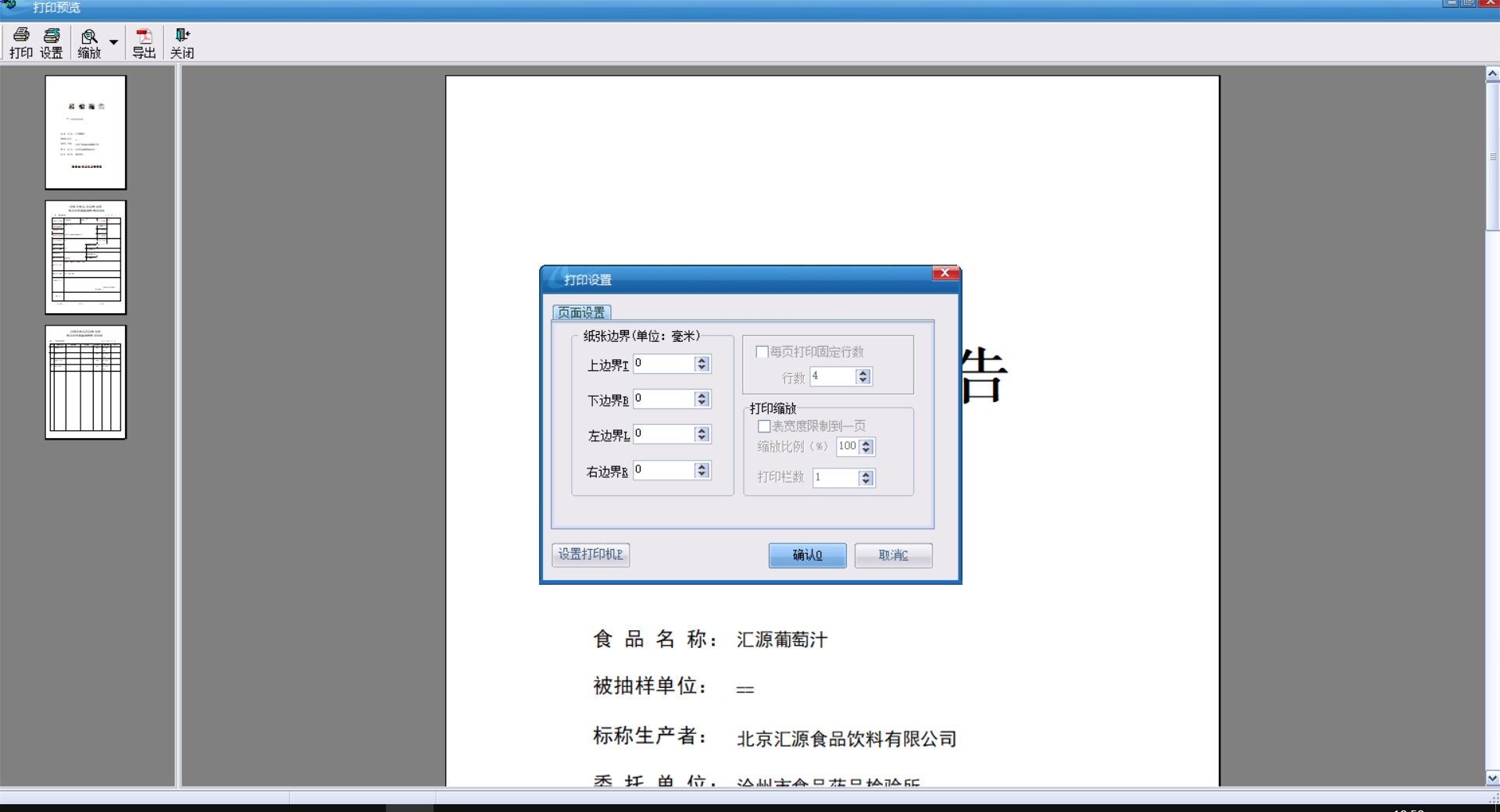 我們在預覽報告或者委托單時,發(fā)現(xiàn)預覽不全,這是因為我們的紙張或者頁邊距設置有錯,我們點擊一份報告進行預覽,預覽界面上有一個設置,我們打開設置進行設置頁邊距,如果還是不行,請聯(lián)系耕宇售后進行調試。