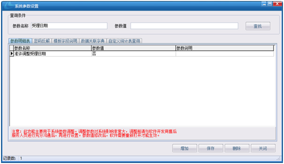 解決辦法:在【系統(tǒng)設(shè)置中心】中的【系統(tǒng)設(shè)置參數(shù)設(shè)置】中的【準(zhǔn)許調(diào)整受理日期】的參數(shù)值調(diào)整為“是”