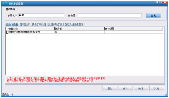 解決辦法:在【系統(tǒng)設(shè)置中心】中的【系統(tǒng)設(shè)置參數(shù)設(shè)置】中的【根據(jù)檢定類型隱藏EXCEL標(biāo)簽頁】的參數(shù)值設(shè)置為【是】,即可隱藏不確定度
