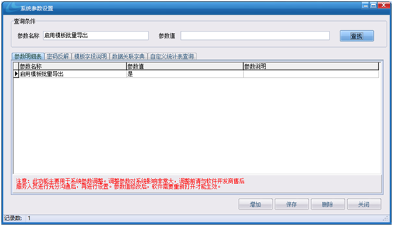 解決辦法:在【系統(tǒng)設置中心】中的【系統(tǒng)設置參數設置】中的【啟用模板批量導出】