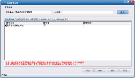 解決辦法:在【系統(tǒng)設置中心】中的【系統(tǒng)設置參數(shù)設置】中的【是否準許跨科室審核】