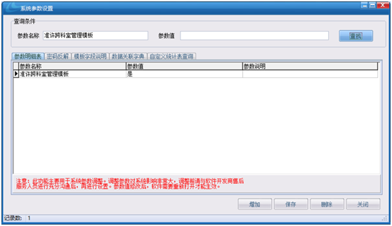 的參數(shù)值設(shè)置為是,即可跨科室管理模板