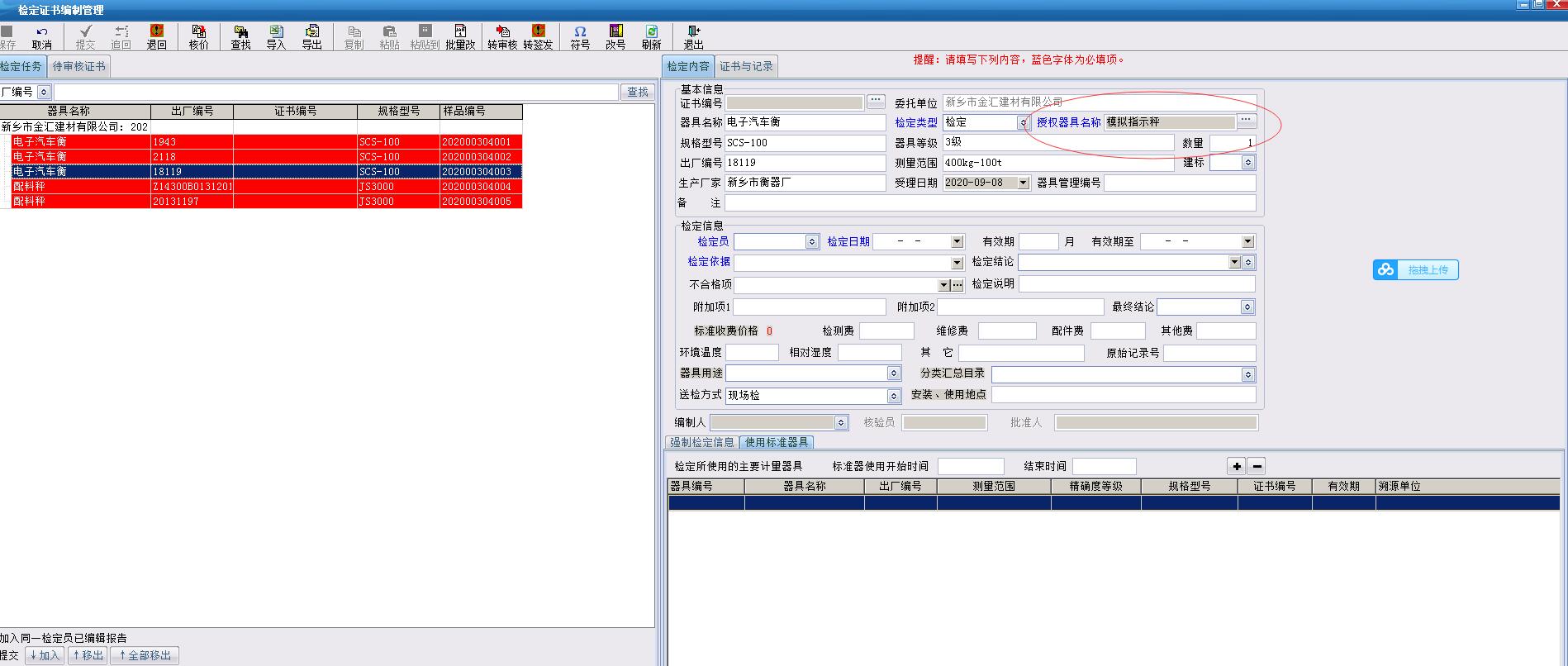 證書編制中,器具沒有選擇對應(yīng)的授權(quán)檢測器具類別信息