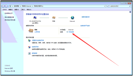 打開網(wǎng)絡(luò)共享中心,選擇本地連接