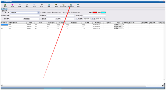 如果維護(hù)了標(biāo)準(zhǔn)器具的話:【基礎(chǔ)信息設(shè)置】→【標(biāo)準(zhǔn)器具維護(hù)】,將維護(hù)的標(biāo)準(zhǔn)器具導(dǎo)出成Excel