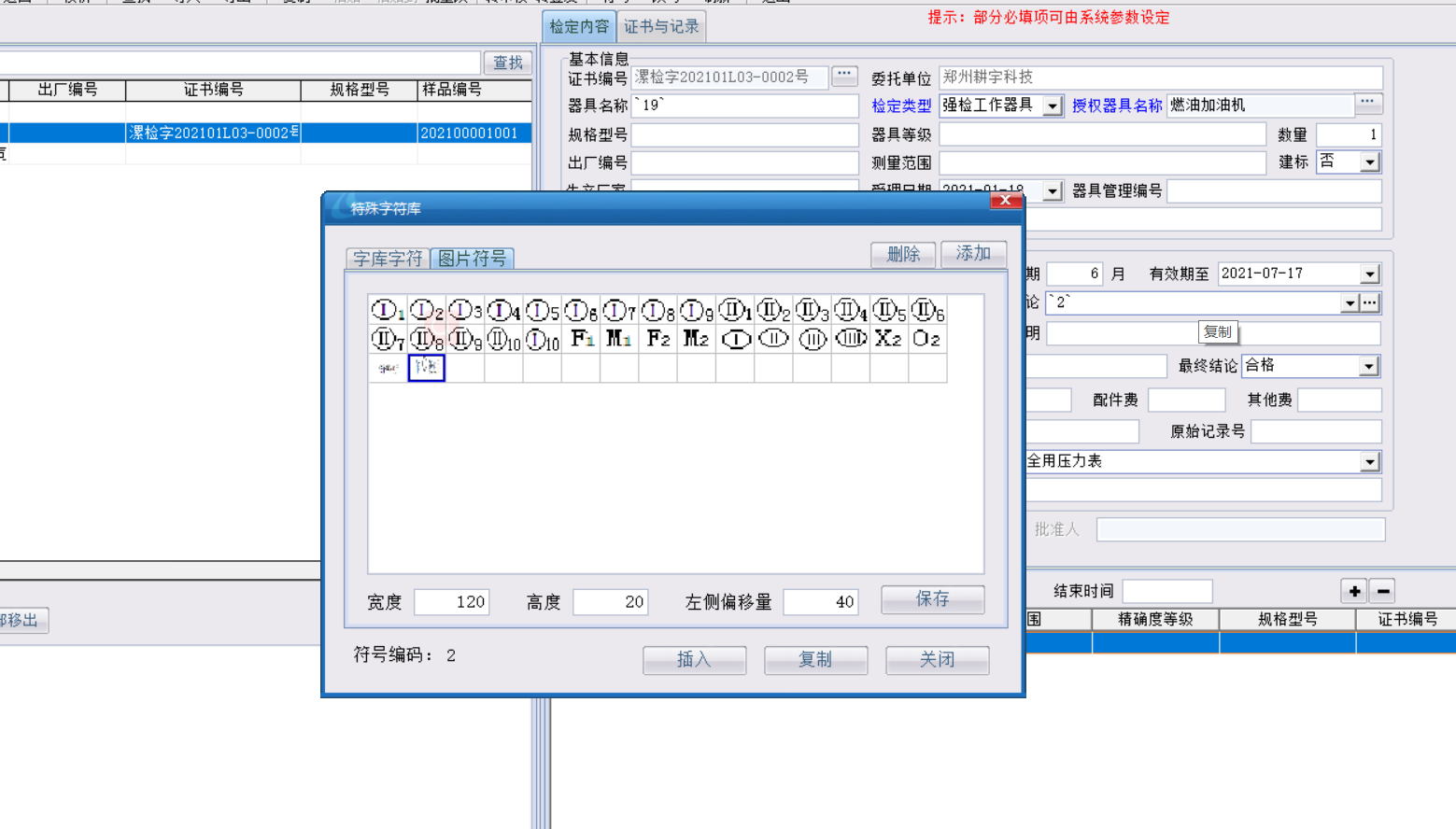 在證書(shū)編制【符號(hào)】那里插入特殊符號(hào)的時(shí)候符號(hào)的圖片大小每次都需要我們手工去調(diào)整,這次更新增加了符號(hào)圖片的